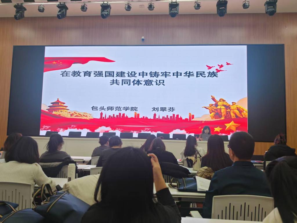 接着,刘翠芬老师为所有学员讲解了在教育强国建设中,铸牢中华民族共同体意识对于教师具有深远的意义,教师需要深刻理解中华民族共同体意识的内涵和重大意义,并将其作为教育工作的核心导向,树立正确的国家观、历史观、民族观和文化观,成为各族师生交往交流交融的桥梁,为教育强国建设提供坚实支撑。