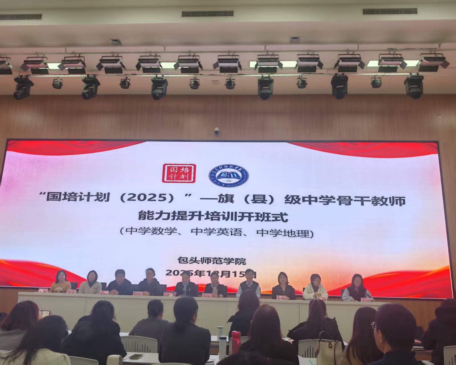 2025年12月15日上午,由杜芸莉老师主持举行了“国培计划(2025)”—旗(县)级中学骨干教师能力提升培训开班仪式,介绍了出席此次活动的各位领导。同时,包头师范学院李灵芝院长也对参与此次培训的全体学员做了相关的纪律要求,希望大家严格按照相关要求,按时培训,认真学习,满载而归。