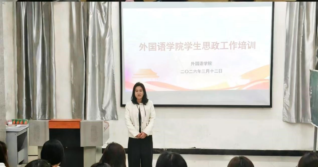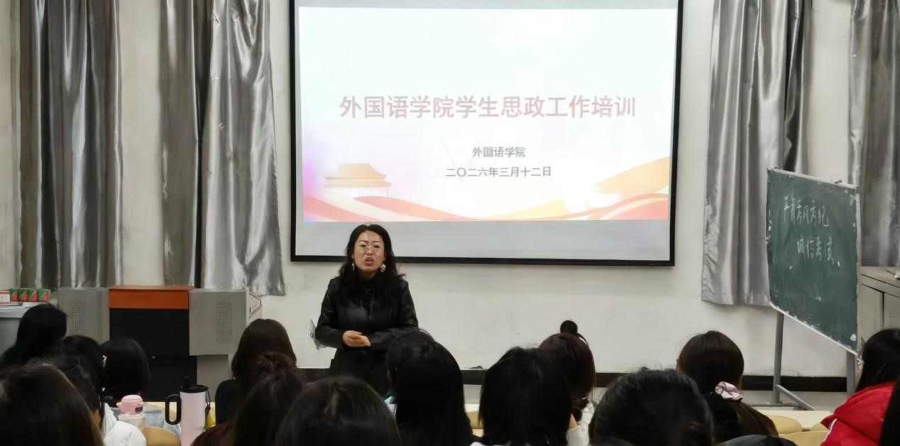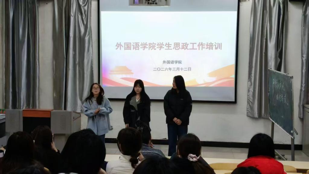 为进一步加强学生干部队伍建设,提升学生的思想政治素养与工作能力,外国语学院于2026年3月12日在南逸夫楼124教室组织召开了2026年春季学期学生工作推进会。学院学工办主任张英老师,辅导员康树林老师出席会议,全体学生干部参加会议。