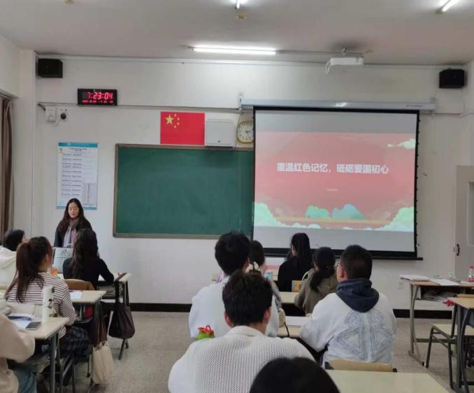 党团合力解时事 红色基因铸初心 —— 外国语学院主题活动赋能青年成长 2025年10月22日,外国语学院在南逸夫楼402教室举办“党团合力解时事 红色基因铸初心”主题活动。活动由学院教工党支部书记王亚主讲,2025级英语2班全体同学参与,聚焦爱国主义教育与时事学习,以红色文化浸润青年心灵。 活动围绕“沉浸式红色教育”,通过讲解、观看、实践、感悟四个递进环节展开。王亚老师结合时事背景下的爱国主义教育要求,借助历史图片、革命文物复刻件及真实革命事迹,生动还原革命先辈投身民族救亡的峥嵘岁月。现场氛围热烈,同学们深刻领悟红色精神的时代价值,明确了将红色基因融入专业学习与社会实践、以实际行动践行爱国初心的方向。 此次活动是学院党团协同开展时事教育的具体实践,搭建了党建与外语专业建设深度融合的平台。后续,学院将引导青年学子成长为胸怀家国、本领过硬的复合型外语人才,为国家发展注入青春力量。 外国语学院 2025年10月22日