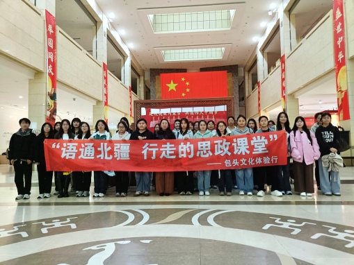 2025 年 10 月 19 日,包头师范学院外国语学院 “语通北疆 行走的思政课”实践活动如期开展。辅导员康树林老师带领学生党员、学生会干部及入党积极分子走进黄河博物馆与包头博物馆,以沉浸式文化体验探访打破传统课堂边界,在北疆文化浸润中筑牢青年学子的家国情怀,在北疆文化探访中延续系列活动的爱国情怀与文化传承脉络。